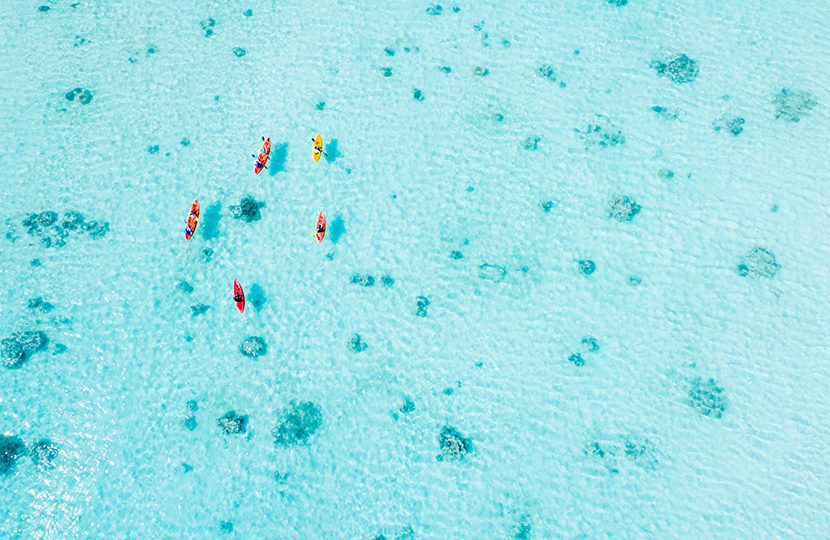 As inviting as the land attractions are the crystalline waters, as stunning as the Maldives, that surround it. Jump in, right from the jetty, the overwater, or the beach villas, and you’ll see fields of acropora coral that look like pine trees. The seas here are teeming with aquatic life — dory, chromis, fusilier, sardine, crocodile fish, bat fish, long-fin banner fish, parrot fish, the list goes on — and Bawah hopes to transform this marine environment into a Unesco Biosphere Reserve within a decade. Visitors can snorkel, dive, or stay dry on the water on a kayak ride to a nearby cave populated by hundreds of bat (a big hit with children).